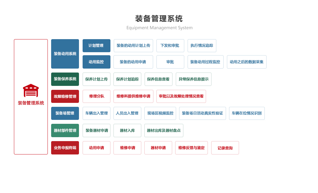 綜合保障系統(tǒng)依托物聯(lián)網(wǎng)、RFID識別和傳感技術,著眼作戰(zhàn)精準保障、戰(zhàn)備常態(tài)保障和官兵生活保障,對戰(zhàn)備物資、裝備器材、營房物資和被裝物資等的全生命周期的電子化管理,對官兵的健康實時監(jiān)護。包含財務管理、軍需油運、武器裝備、衛(wèi)勤管理、營房管理模塊。確保部隊出動,車輛給養(yǎng)油料跟得上,裝備維護情況實時掌握,營房管理工作平時與戰(zhàn)備同步推進。